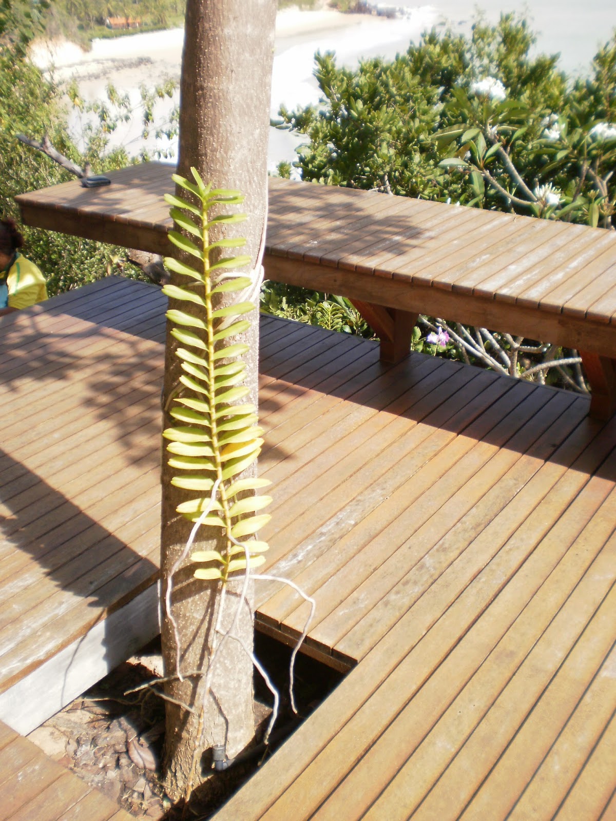 Esta semana tive a grata satisfação de desfrutar do resultado do meu trabalho. Fiquei maravilhada com a beleza, saúde e vigor das orquídeas colocadas nos troncos de árvores na casa de uma cliente que presto consultoria. O ambiente ocorre, na beira mar, em vegetação remanescente de mata atlântica. As árvores que utilizei foram predominantemente da espécie cajueiro (Anacardium ocidentale).